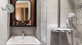 ZimmerFühl dich in einem der 42 klimatisierten Zimmer mit Espressomaschine und Flachbildfernseher wie zu Hause. In deinem Zimmer findest du ein Pillowtop-Bett mit hochwertige Bettwaren vor. Ein WLAN-Internetzugang (kostenlos) ist ebenso verfügbar wie Satellitenempfang. Die Badezimmer bieten Badewannen oder Duschen, kostenlose Toilettenartikel und Haartrockner.