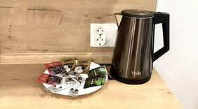 PokojeV tomto apartmánu s osobitou výzdobou a kuchyní, k jejímuž vybavení patří lednička a varná deska, se budete cítit jako doma. Bezdrátový internet zdarma vám zajistí spojení se světem a 50palcová Smart televize, která nabízí kabelové kanály, dobrou zábavu. Další užitečné vybavení a služby: mikrovlnná trouba a kávovar/čajovar.