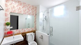 部屋全部で 46 室ある冷房完備の客室には薄型テレビが備わっており、ゆったりおくつろぎいただけます。客室ではWiFi (無料)をご利用いただけます。シャワーのある専用バスルームには、レインフォールシャワー、ヘアドライヤーが備わっています。ボトルウォーター (無料)、遮光カーテンをご利用いただけ、ハウスキーピング サービスは、毎日行われます。