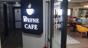 RestoranDefne cafe yemek servisi için ideal, ayrıca otelin kahve dükkânında/kafede hafif yemek servisi yapılıyor. Misafirlere her gün 7 ve 10 arasında ücretsiz açık büfe kahvaltı servisi yapılmaktadır.