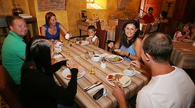 RestauraceHotel podává denně od 7:30 do 9:30 za příplatek bufetovou snídani.