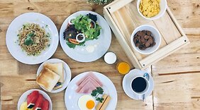RestaurantGegen Gebühr wird täglich von 07:00 Uhr bis 10:00 Uhr ein nach Wunsch zubereitetes Frühstück angeboten.