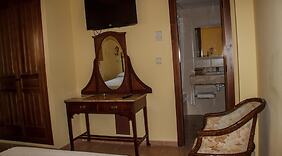 ZimmerFühl dich in einem der 18 klimatisierten Zimmer mit Flachbildfernseher wie zu Hause. Ein WLAN-Internetzugang (kostenlos) ist ebenso verfügbar wie Digitalempfang. Die Badezimmer bieten kostenlose Toilettenartikel und Haartrockner. Zu den Highlights gehören Telefone. Die Zimmer werden täglich sauber gemacht. Babybetten (kostenlos) erhältst du auf Anfrage.