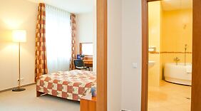 PokojeV jednom z 45 pokojů, k jejichž vybavení patří LCD televize, se budete cítit jako doma. Bezdrátový internet zdarma vám zajistí spojení se světem a televize, která nabízí satelitní kanály, dobrou zábavu. K vybavení koupelen patří vana či sprcha a vysoušeč vlasů. Další užitečné vybavení a služby: telefon, vestavěný trezor a psací stůl.