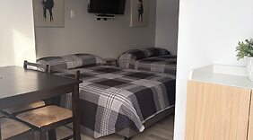 ZimmerGönn dir einen Aufenthalt in einem der 12 Zimmer, die Fußbodenheizung bieten. In den Küchen finden sich große Kühlschränke/Gefrierfächer, Öfen und Mikrowellen. Ein WLAN-Internetzugang (kostenlos) steht zur Verfügung. Zu den Highlights gehören Bügeleisen/Bügelbretter und die Zimmer werden täglich sauber gemacht.