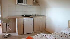 ZimmerFühl dich in einem der 5 Zimmer, die Kochnischen bieten, die über große Kühlschränke/Gefrierfächer und Herdplatte verfügen, wie zu Hause. Die Zimmer haben eigene möblierte Patios. Ein WLAN-Internetzugang (kostenlos) steht zur Verfügung. Zu den Highlights gehören Schreibtische und separate Sitzecken.