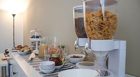 RestaurantNutz den Zimmerservice (bitte Zeiten beachten) dieses B&Bs. Ein Frühstücksbuffet ist im Preis inbegriffen.