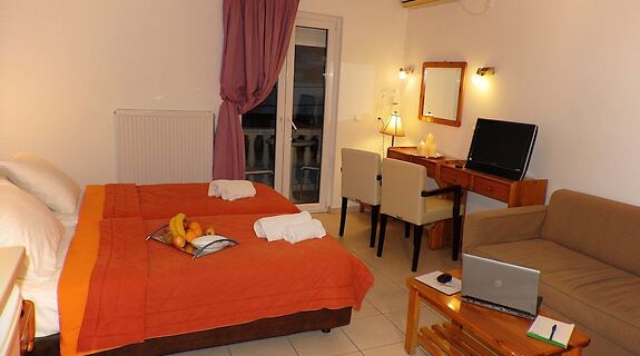 部屋全 23 室ある冷房完備の客室には、冷蔵庫、電子レンジなどが備わった簡易キッチンがあり、ゆったりおくつろぎいただけます。各客室には、専用の家具付きバルコニーがあります。WiFi (無料)をお使いいただけるほか、衛星放送の番組をご覧いただけます。電話やセーフティボックスをご利用いただけます。