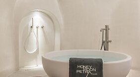 LageMehrHoneymoon Petra Villas in Santorin liegt in der Nähe der Bucht, eine 1-minütige Fahrt von Caldera von Santorin und 10 Minuten Fahrt von Aussichtspunkt mit Blick auf die Kirche von Oia entfernt. Dieses Hotel im luxuriösen Stil ist 11,3 km von Hafen von Athinios und 12,6 km von Alt-Thera entfernt.