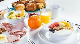 RestaurantMorgenmadsbuffet serveres på hverdage fra kl. 06.30 til kl. 09.30 og i weekenderne fra kl. 06.30 til kl. 10.30 mod et gebyr.