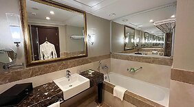 客房有 600 间空调客房提供迷你吧和液晶电视;您定能在旅途中找到家的舒适。您的泰普尔卧床备有意大利 Frette 床单。提供免费无线网络,方便您与朋友保持联系;卫星频道可满足您的娱乐需求。配备独立的浴缸和淋浴的浴室提供浸泡浴缸和大花洒淋浴喷头。