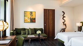 ZimmerFühl dich in einem der 35 klimatisierten Zimmer mit LCD-Fernseher wie zu Hause. In deinem Zimmer findest du ein Pillowtop-Bett mit hochwertige Bettwaren vor. Die Zimmer haben eigene Balkone oder Patios. Ein WLAN-Internetzugang (kostenlos) ist ebenso verfügbar wie Kabelempfang. Es gibt eigene Badezimmer, die über Designer-Toilettenartikel und Haartrockner verfügen.
