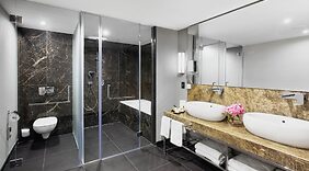 ZimmerFühl dich in einem der 194 klimatisierten Zimmer mit Flachbildfernseher wie zu Hause. Dein Bett bietet Daunenbettdecken und hochwertige Bettwaren. Ein WLAN-Internetzugang (kostenlos) steht zur Verfügung. Es gibt eigene Badezimmer mit Badewannen und Duschen (separat), die über Regenduschen und Designer-Toilettenartikel verfügen.