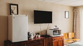 ZimmerFühl dich in einem der 14 Zimmer, die Kühlschrank und Mikrowelle bieten, wie zu Hause. Es gibt einen kostenfreien Internetzugang per Kabel und WLAN sowie Kabelempfang. Die Badezimmer bieten Badewannen oder Duschen und kostenlose Toilettenartikel. Zur Austattung gehören Schreibtische und Wasserkocher mit Kaffee-/Teezubehör; die Zimmer werden täglich sauber gemacht.
