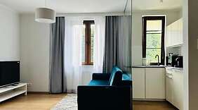 PokojeV tomto apartmánu s osobitou výzdobou a kuchyňkou, k jejímuž vybavení patří lednička a varná deska, se budete cítit jako doma. Na posteli je přizpůsobitelná matrace doplněná o ložní prádlo z egyptské bavlny a kromě toho je k dispozici rozkládací pohovka. Bezplatné bezdrátové i pevné připojení k internetu vám zajistí spojení se světem a Smart televize, která nabízí satelitní kanály, dobrou zábavu. Další užitečné vybavení a služby: psací stůl a oddělený sedací kout. Úklid se provádí úklidová služba.