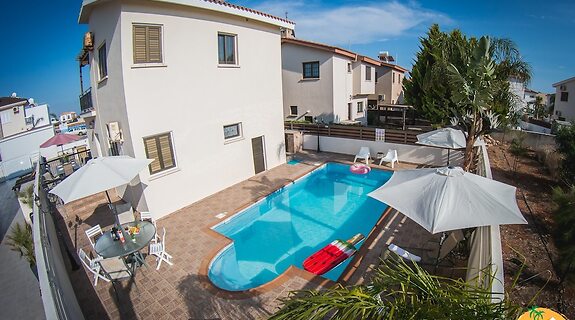 LageMehrDiese Villa in Sotira liegt in Strandnähe, nur 10 Minuten Fahrt von Strand von Nissi und Ayia Thekla Strand entfernt. Diese Villa ist 18,5 km von Fig Tree Bay und 1,5 km von WaterWorld Ayia Napa (Wasserpark) entfernt.
