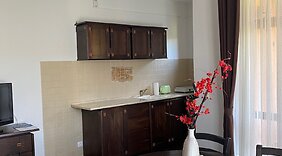 CamereAlloggia in una delle 10 camere della struttura! Nella tua sistemazione, completa di angolo cottura con frigorifero e lavastoviglie, ti sentirai come a casa. Grazie ad un comodo letto con copriletto in piuma e biancheria da letto di alta qualità dormirai sonni tranquilli. La TV LED da 80 cm con canali via cavo è l'ideale per concedersi un po' di svago, mentre il Wi-Fi gratuito ti permette di restare in contatto con il mondo. I comfort includono scrivanie e quotidiani gratuiti, mentre le pulizie sono eseguite una volta a soggiorno.