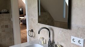 PokojeV tomto apartmánu s osobitou výbavou a kuchyní, k jejímuž vybavení patří lednička a trouby, se budete cítit jako doma. Bezdrátový internet zdarma vám zajistí spojení se světem a televize s plochou obrazovkou dobrou zábavu. Další užitečné vybavení a služby: oddělený sedací kout a kávovar/čajovar. Úklid se provádí jednou za pobyt.