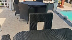 ZimmerDiese Villa mit Klimaanlage verfügt nicht nur über einen Privatpool, sondern ist mit einem Flachbildfernseher ausgestattet und bietet dir somit alles für einen perfekten Aufenthalt. Die Kochnische verfügt über einen Kühlschrank, eine Herdplatte und eine Mikrowelle. Um in Verbindung mit den Daheimgebliebenen zu bleiben, steht dir ein WLAN-Internetzugang (kostenlos) zur Verfügung, während für deine Unterhaltung dank der breiten Auswahl an Kanälen per Kabelempfang gesorgt ist. Das eigene Badezimmer mit Duschwanne ist mit einer Komfortbadewanne und kostenlosen Toilettenartikeln ausgestattet.