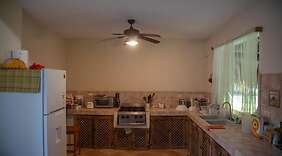 ΔωμάτιαΤο εξοχικό με κλιματισμό διαθέτει μια κουζίνα με ένα ψυγείο/έναν καταψύκτη κανονικού μεγέθους και μια μαγειρική εστία και εκεί θα νιώσετε σίγουρα σαν στο σπίτι σας. Είναι διαθέσιμη δωρεάν ασύρματη πρόσβαση στο ίντερνετ, ώστε να είστε πάντα online. Στις παροχές περιλαμβάνονται ένας φούρνος μικροκυμάτων και ένας ανεμιστήρας.