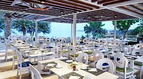 RestaurantFå en bid mad på Thalassa, som er en af 2 restauranter på dette hotel, eller bliv på værelset, og nyd godt af roomservice (i et begrænset antal timer) Afslut dagen med en forfriskning i baren/loungen, strandbaren, or baren ved poolen. Gratis selvbetjening serveres dagligt fra kl. 07.30 til kl. 10.00.