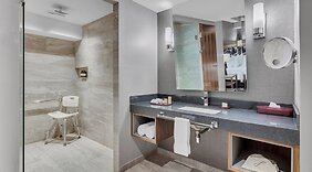 CamereRilassati in una delle 223 camere con aria condizionata della struttura, completa di minibar e macchina per caffè espresso. Riposati su un comodo letto con materasso a doppio strato, completo di copriletto in piuma e biancheria in cotone egiziano. La connessione Internet inclusa, wireless e via cavo, e la TV a schermo piatto da 55 pollici con canali via cavo sono l'ideale per concedersi un po' di svago. Il bagno in camera è dotato di set di cortesia gratuiti e asciugacapelli.