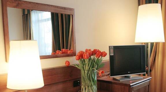 PokojeV jednom z 46 pokojů, k jejichž vybavení patří LCD televize, se budete cítit jako doma. Bezdrátový internet zdarma vám zajistí spojení se světem a televize, která nabízí satelitní kanály, dobrou zábavu. Soukromé koupelny nabízí vybavení, jehož součástí jsou toaletní potřeby zdarma a bidet. Další užitečné vybavení a služby: telefon, vestavěný trezor a psací stůl.