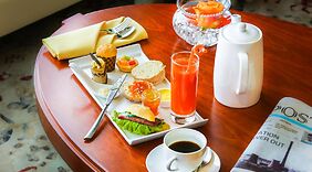 餐厅酒店设有 2 间餐厅,您可以选择到Prime Grille简单吃一点,也可以待在房间里,享受部分时段客房送餐服务。此外咖啡馆还供应美味点心。您可以到酒吧/酒廊,点一杯喜欢的饮品,畅饮一番。每日 06:00 至 10:00 提供免费的自助早餐。
