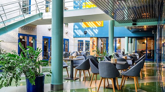 RestaurangHotellets gäster kan äta middag på Capriccio eller beställa snacks på deras kafé. Avsluta dagen med en drink på boendets bar. Frukostbuffé serveras på vardagar mellan 07.00 och 10.00 och på helger mellan 08.00 och 11.00 mot en avgift.