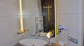 ZimmerFühl dich in einem der 16 Zimmer, die Minibar und Espressomaschine bieten, wie zu Hause. In deinem Zimmer findest du ein Memory-Foam-Bett mit hochwertige Bettwaren vor. 72 cm groáe LED-Fernseher mit Satellitenempfang sorgen fr gute Unterhaltung; auáerdem steht ein WLAN-Internetzugang (kostenlos) zur Verfgung. Es gibt eigene Badezimmer mit Duschen, die über Regenduschen und Haartrockner verfügen.