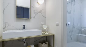 PokojeV tomto apartmánu pochopitelně nechybí Smart televize. Bezdrátový internet zdarma vám zajistí spojení se světem a televize, která nabízí digitální kanály, dobrou zábavu. K vybavení soukromé koupelny patří vana či sprcha, bidet a pantofle. Další užitečné vybavení a služby: psací stůl a rychlovarné konvice. Úklid se provádí týdně.