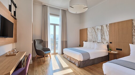 PokojeV jednom z 75 klimatizovaných pokojů, k jejichž vybavení patří lednička a televize s plochou obrazovkou, se budete cítit jako doma. Bezdrátový internet zdarma vám zajistí spojení se světem a televize, která nabízí satelitní kanály, dobrou zábavu. Soukromé koupelny nabízí vybavení, jehož součástí jsou vana či sprcha, toaletní potřeby zdarma a vysoušeč vlasů. Další užitečné vybavení a služby: telefon, vestavěný trezor a kávovar/čajovar.