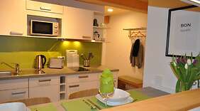 ZimmerGönn dir einen Aufenthalt in einem der 16 Zimmer, die individuell ausgestattet sind und über Fußbodenheizung und einen Smart-TV verfügen. In den Küchen finden sich Kühlschränke, Herdplatte und Mikrowellen. Der Internetzugang per Kabel und WLAN ist kostenfrei und Flachbildfernseher mit Digitalempfang sorgen für gute Unterhaltung. Zur Austattung gehören Schreibtische und Wasserkocher mit Kaffee-/Teezubehör; die Zimmer werden wöchentlich sauber gemacht.