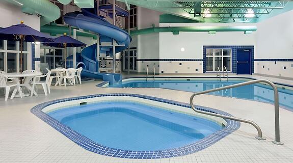 Servicios hotelPara tus ratos libres, tienes instalaciones recreativas como una piscina cubierta, un tobogán acuático y una bañera de hidromasaje a tu disposición. Encontrarás también conexión a Internet wifi gratis, un salón de eventos y una máquina expendedora.